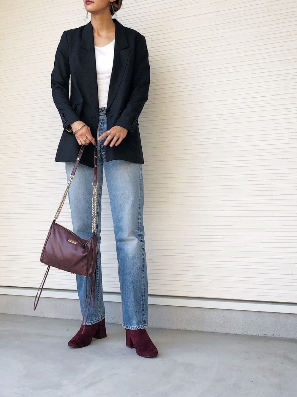 シンプルコーデにボルドーでアクセント🍁 ・ 最近は穏やかな陽気。 今日はお天気も良く行楽日和🌞 JK羽織ったけど、暑かった💦