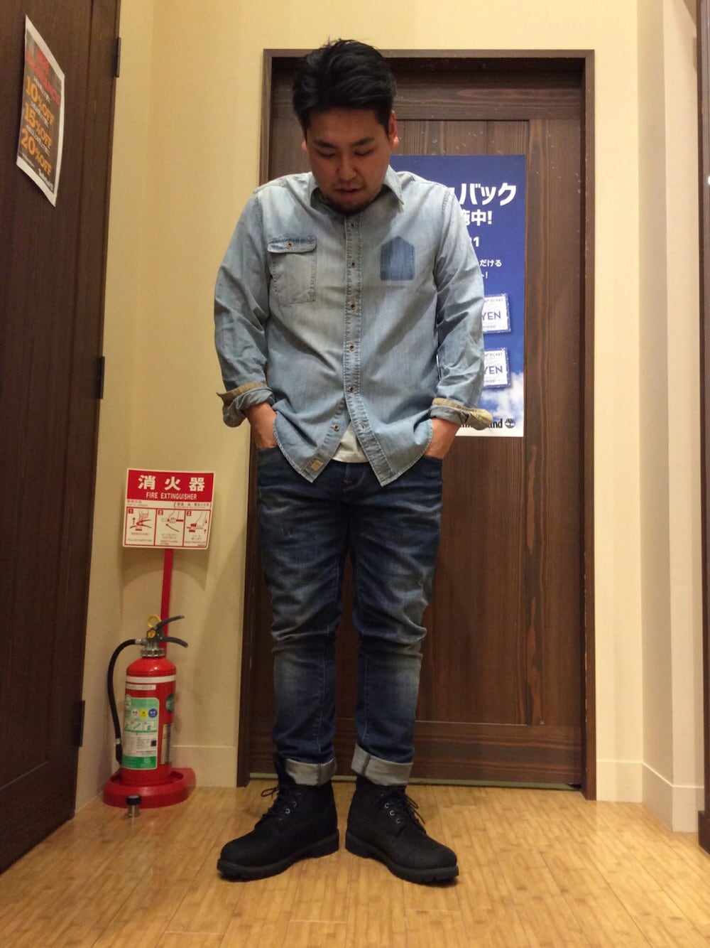 🌝アイテム縛りご指名コーディネートゲーム開催🌝 まさかの!? 逆指名頂きました😬 さっそくですがデニムシャツをきてみました! 胸元がポイントです😁 次は誰を指名しようかな.... miyataさん!(ysk3844) A184Pレザージャケットでマッドマックスみたいに ワイルドにお願いします😈