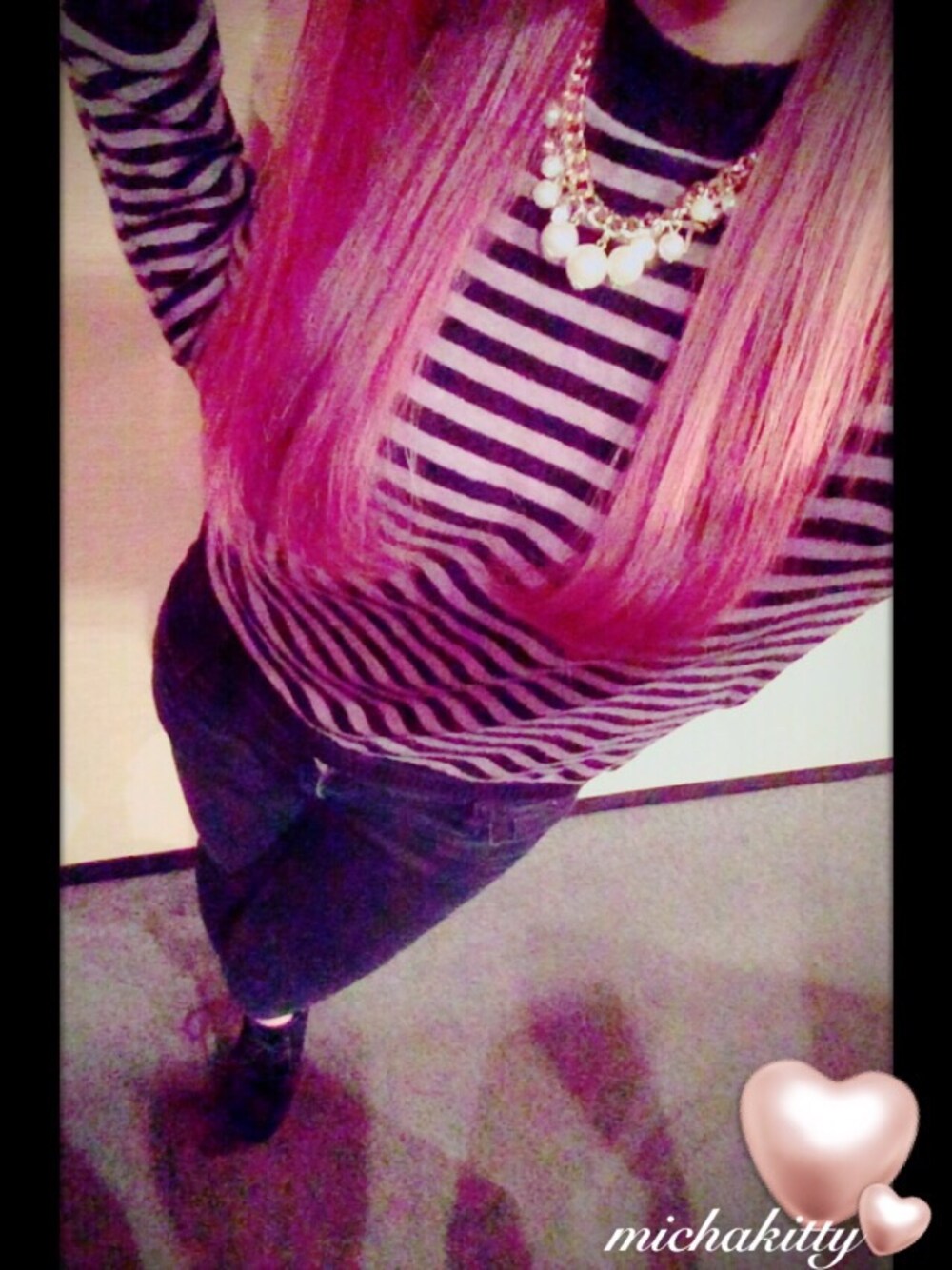 大好きなボーダー の日はパンツは 絶対スキニーで💜 パールのネックレス でレディ感をだしました¨̮
