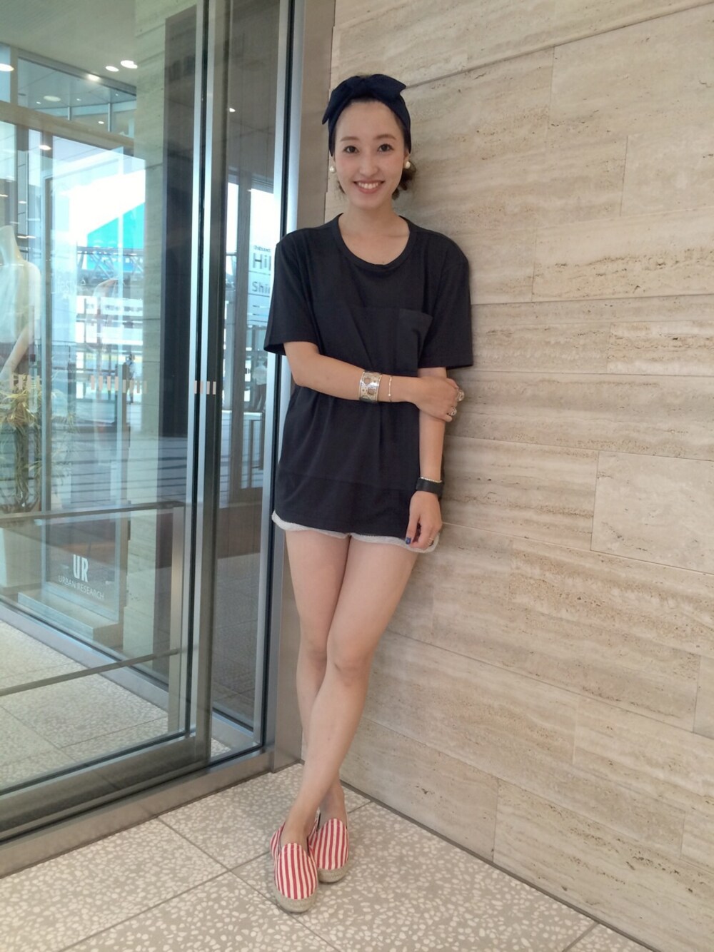 大きめなメンズTとショーツで夏スタイル。 こんな日はヘアスタイルもスッキリ☺︎