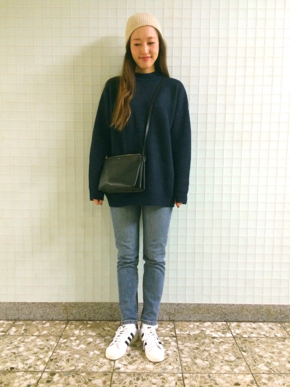 オーバーサイズニットには細身シルエットのデニムがマスト。スッキリと着る着方が好きです。