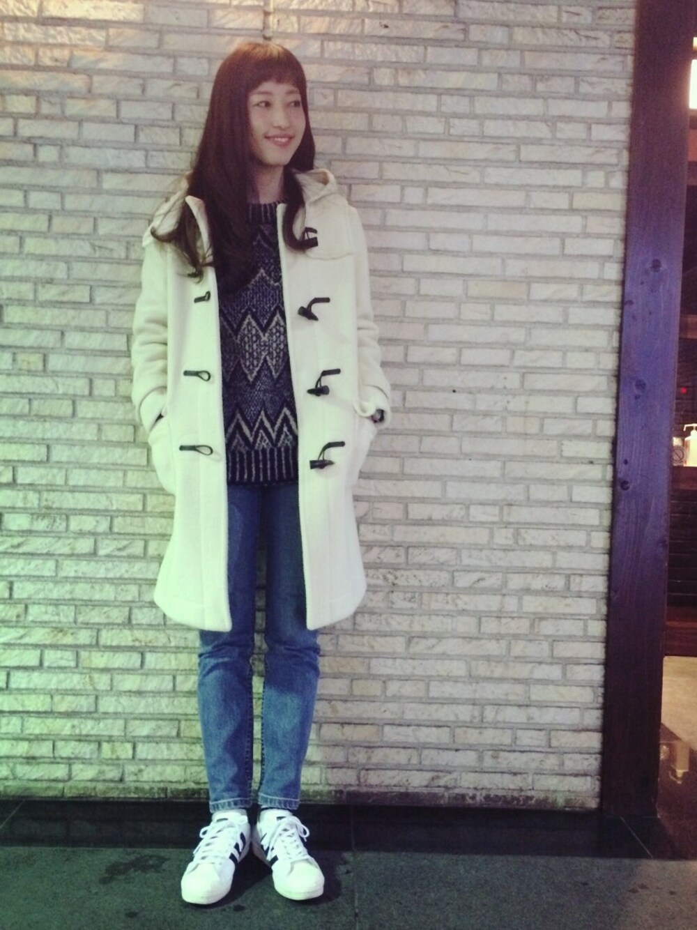 今年は白のダッフルコートが大活躍です。