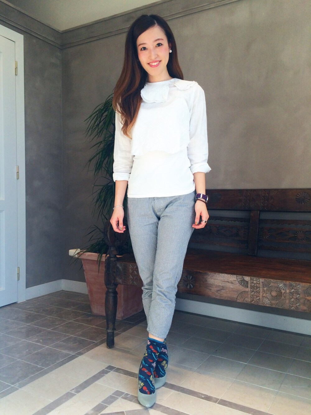 本日は白ブラウスで少し落ち着いたスタイリングにしてみました(o^^o) 今日の東京は暖かくて気持ち良いですね。
