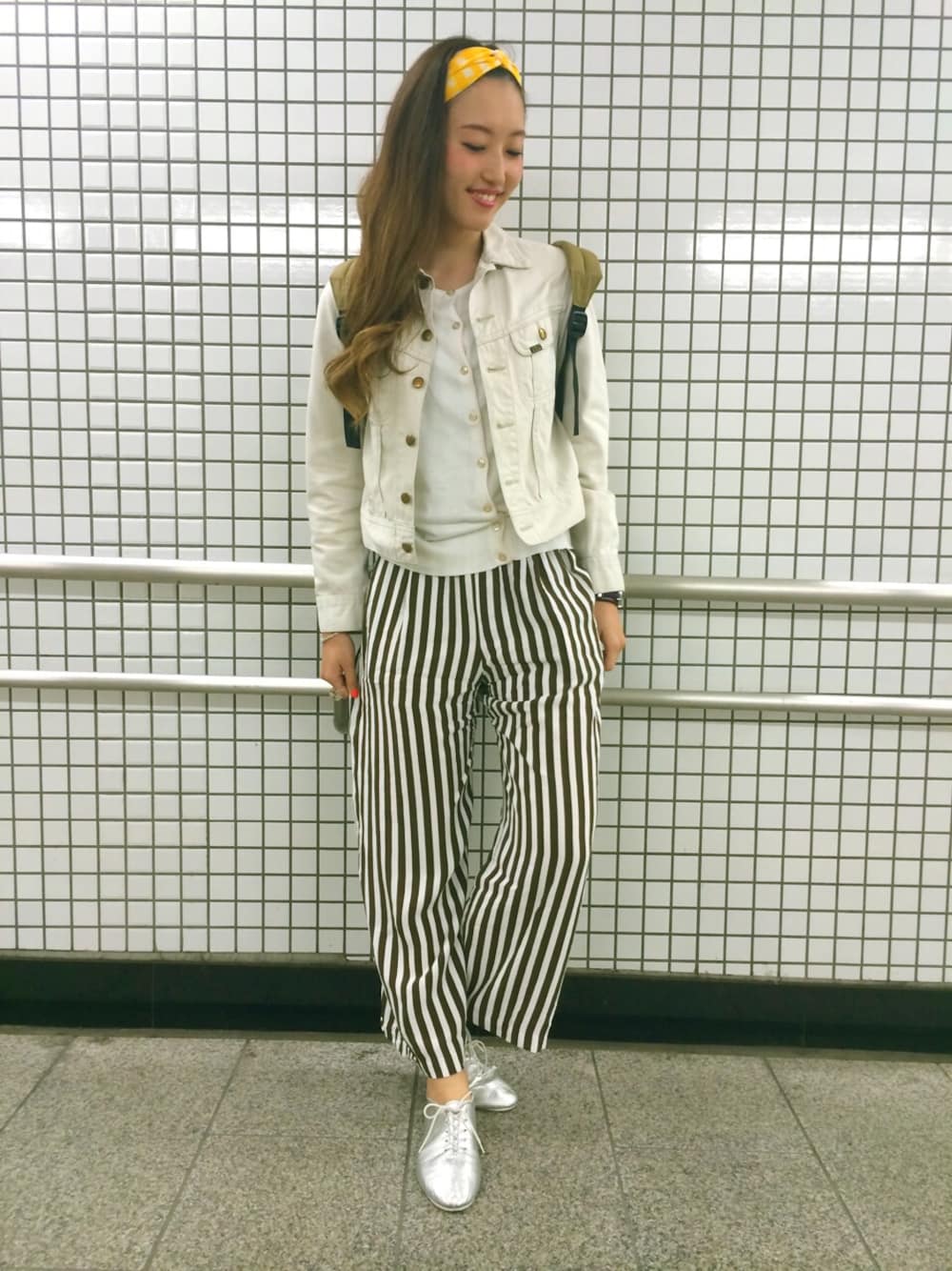 ホワイトを基調としたコーディネートにストライプと大好きイエローをヘアアクセサリーで取り入れました! jacket..orslow