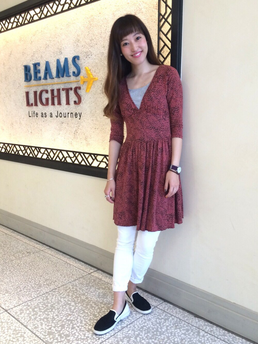 今日はワンピースの気分。甘くなりすぎないようにホワイトスキニーでスッキリと。