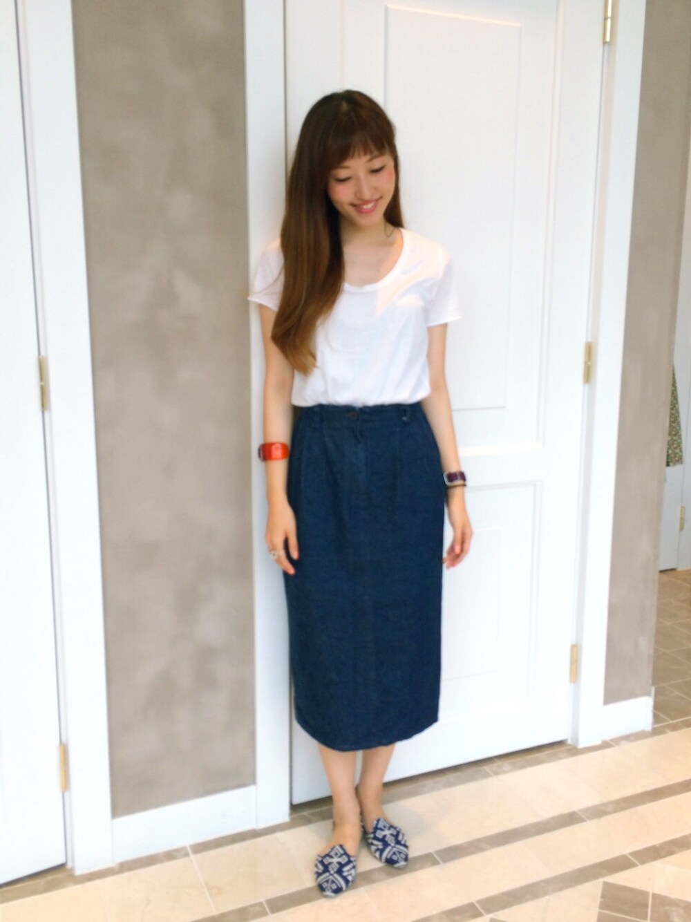 MAJESTICのTシャツはラインがきれいで着心地抜群。 シンプルにデニムと合わせます。