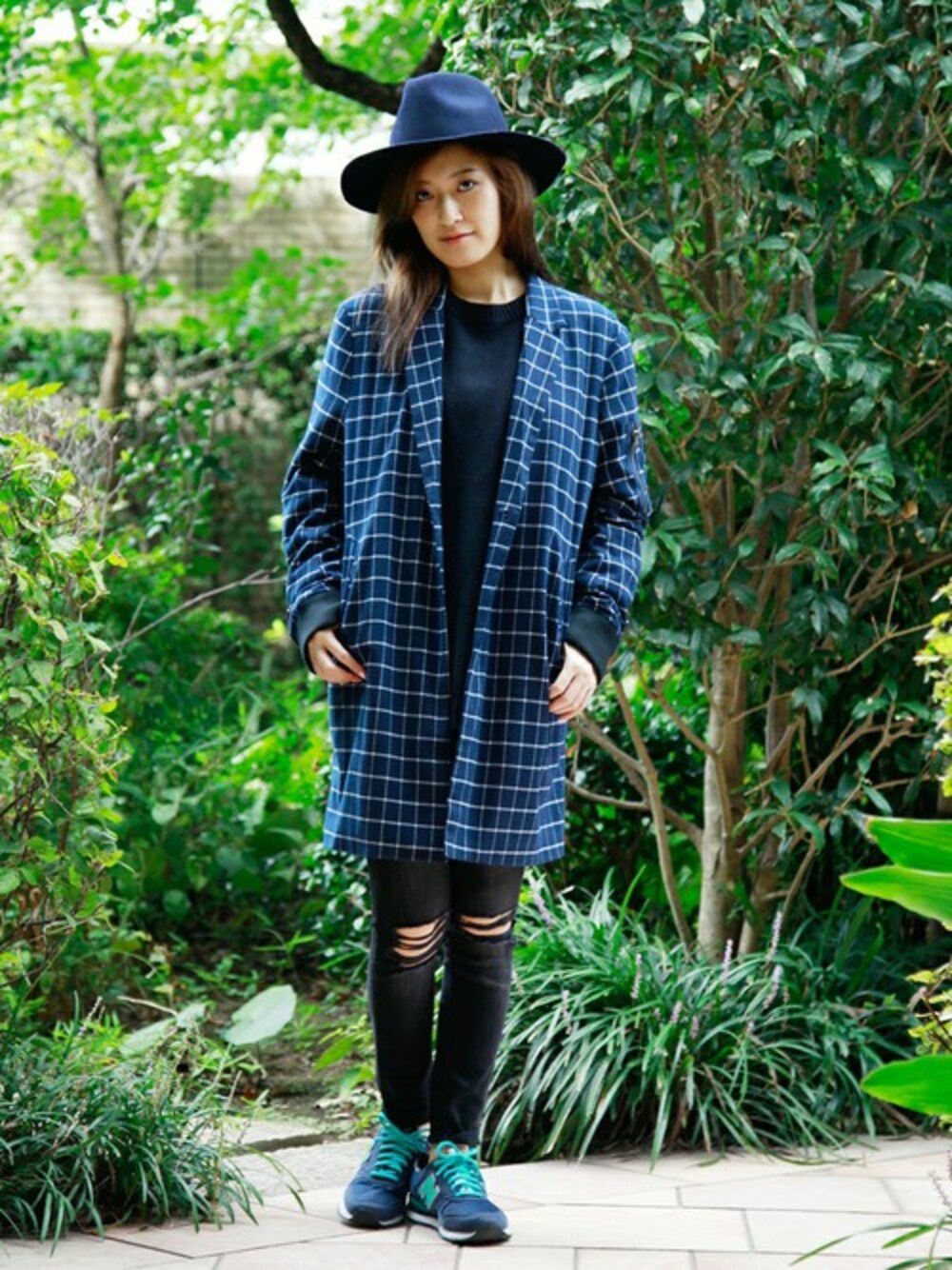 ウインドペンチェック柄のチェスターコートで 全体をダークトーンで合わせました♪
