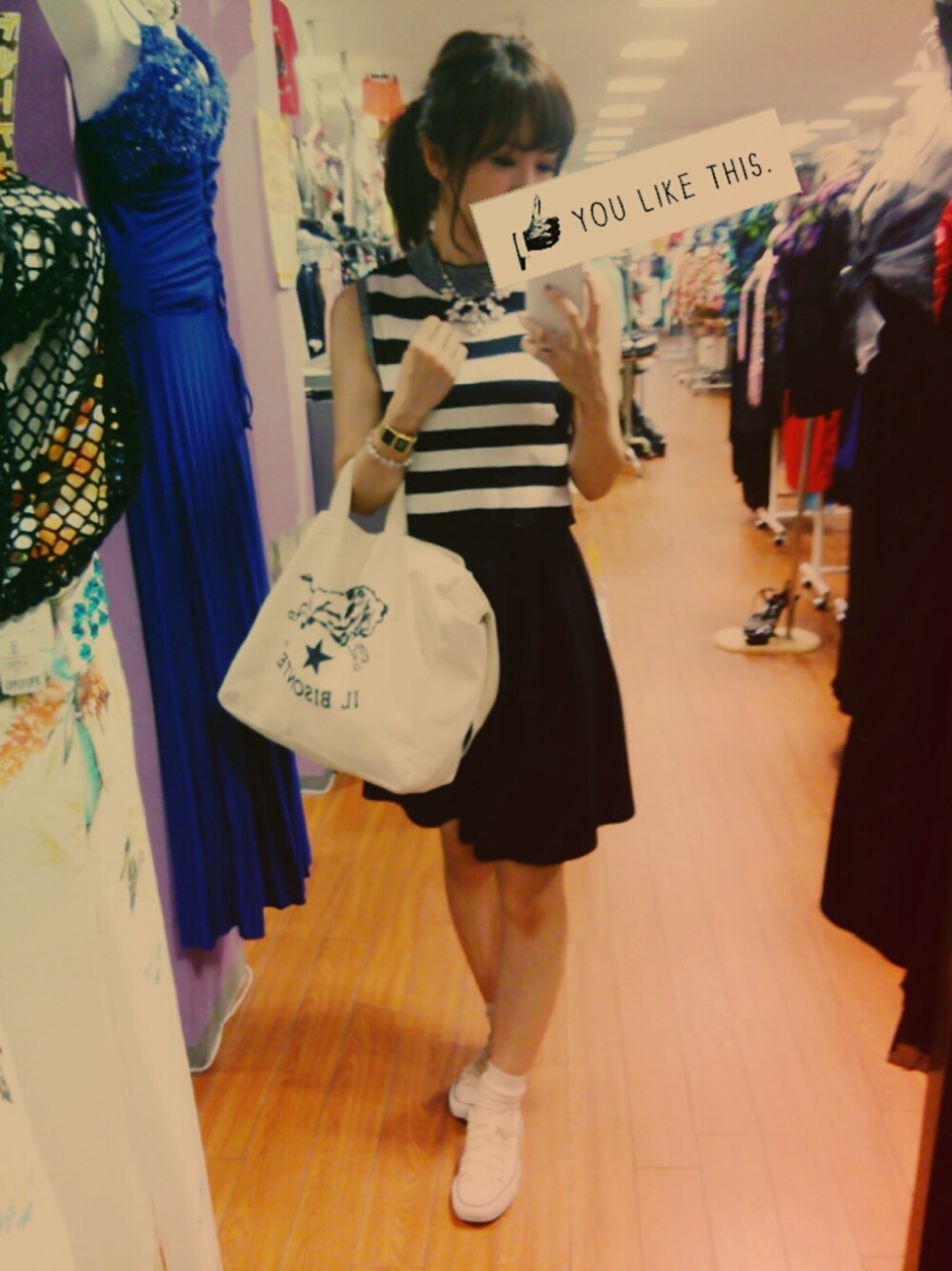 前髪ぱっつんにした。 tops&skirt(set): COCO DEAL necklace: LEPSIM LOWRYSFARM shoes: Converse socks: niko and bag: IL BISONTE ココディール新作** イルビゾンテのmook本の付録のバック、ちょー使える! おすすめ(*´`) レプシムの夏のセールで買ったネックレス秋も使えそうです。