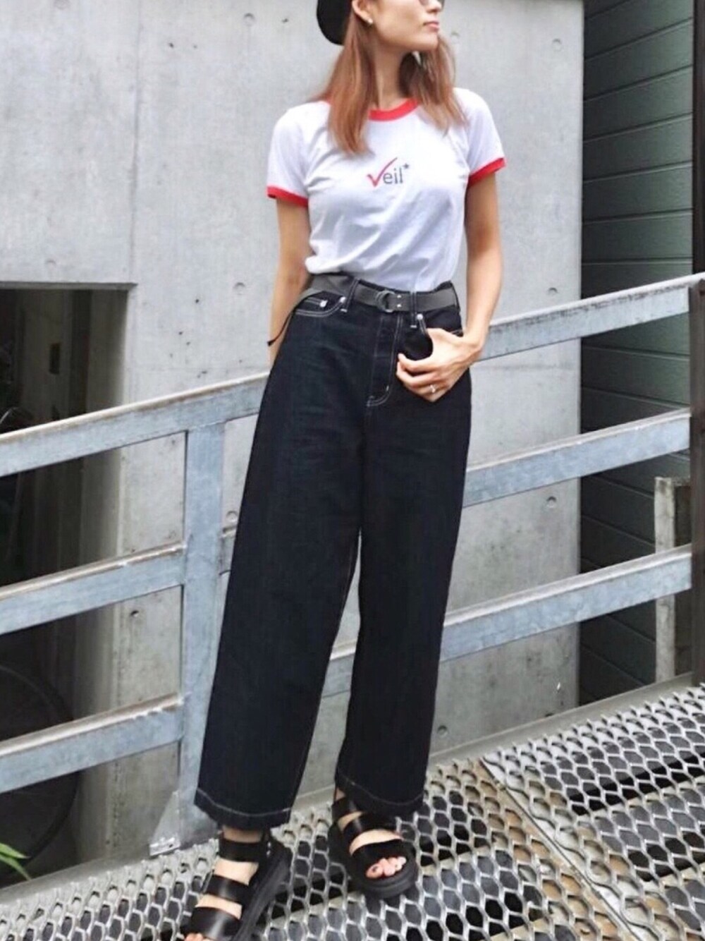 Misakiのデニムパンツ「【WEB限定サイズ有】ワイド テーパード デニムパンツ」を使ったコーディネート