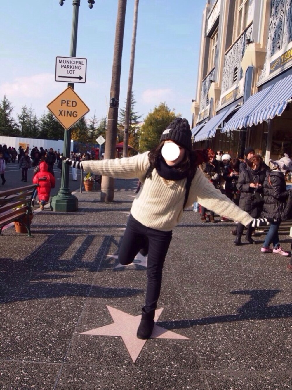in USJ!! ニットの下には何枚ものヒートテック。(笑) マフラーぐるぐる、ニット帽、ダサい手袋(笑)防寒対策ばっちり!