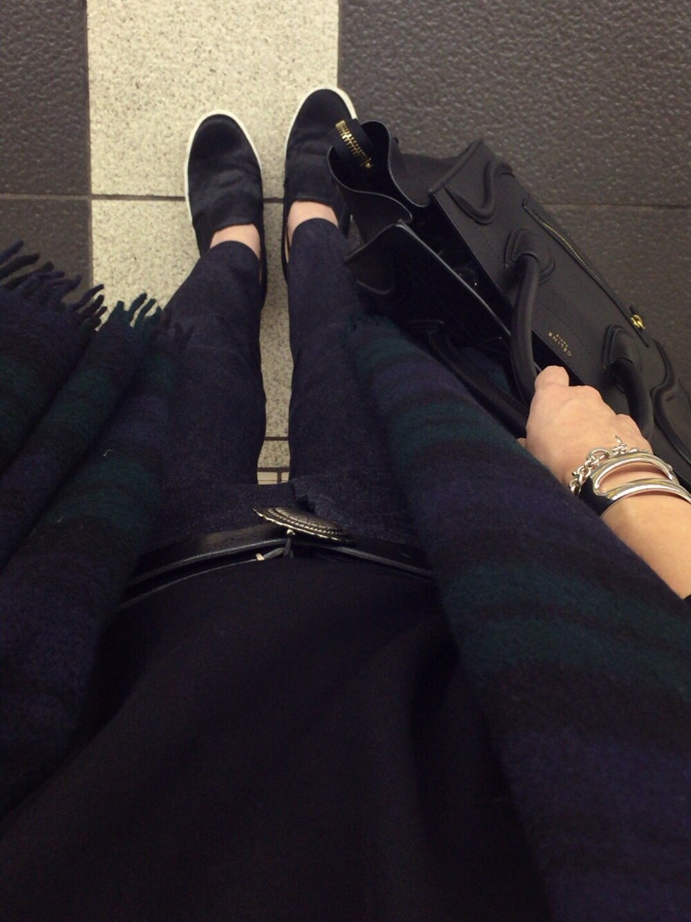 ☆ Black × denim ☆ 今日は荷物がワンサカのため、 久々にこの子で☺︎ 実はこの中にマスカット一房も 忍ばせてる…😋