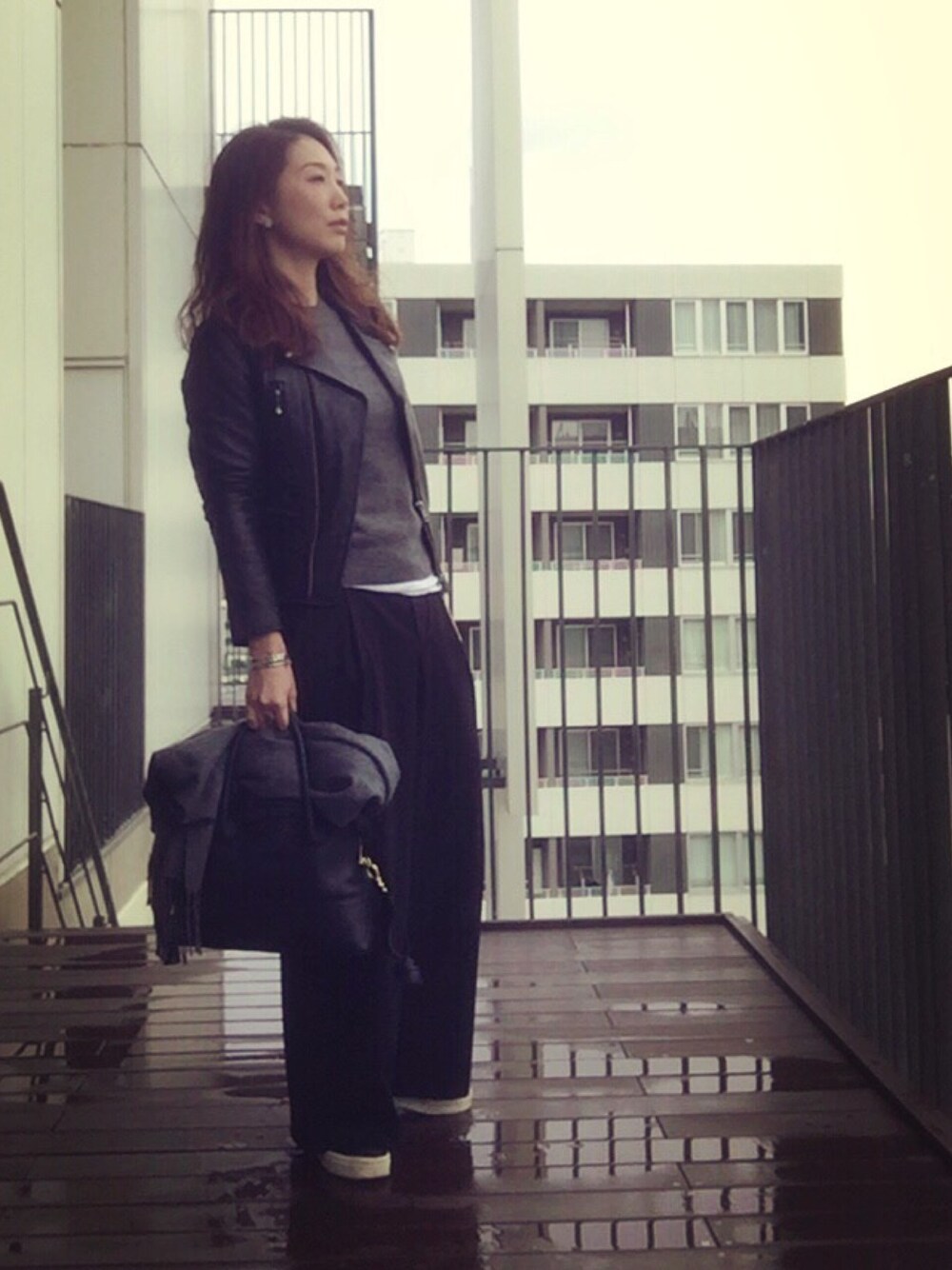☆ Black × Gray ☆ ライダースにUNIQLOニットでホカホカ☺︎ この配色がやっぱり落ち着く… もうすぐ12月なんて早すぎるー(@_@)