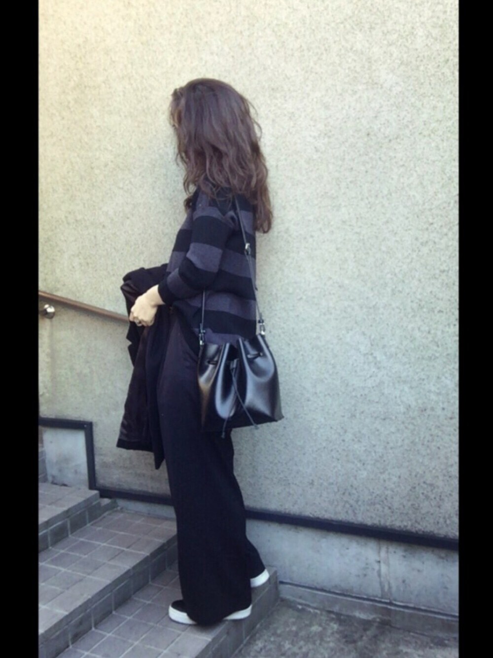 ☆ Gray × Black ☆ オーバーニットとワイドパンツで 動きやすく🏃💨 このニットは度詰めでとっても あったかい☺️
