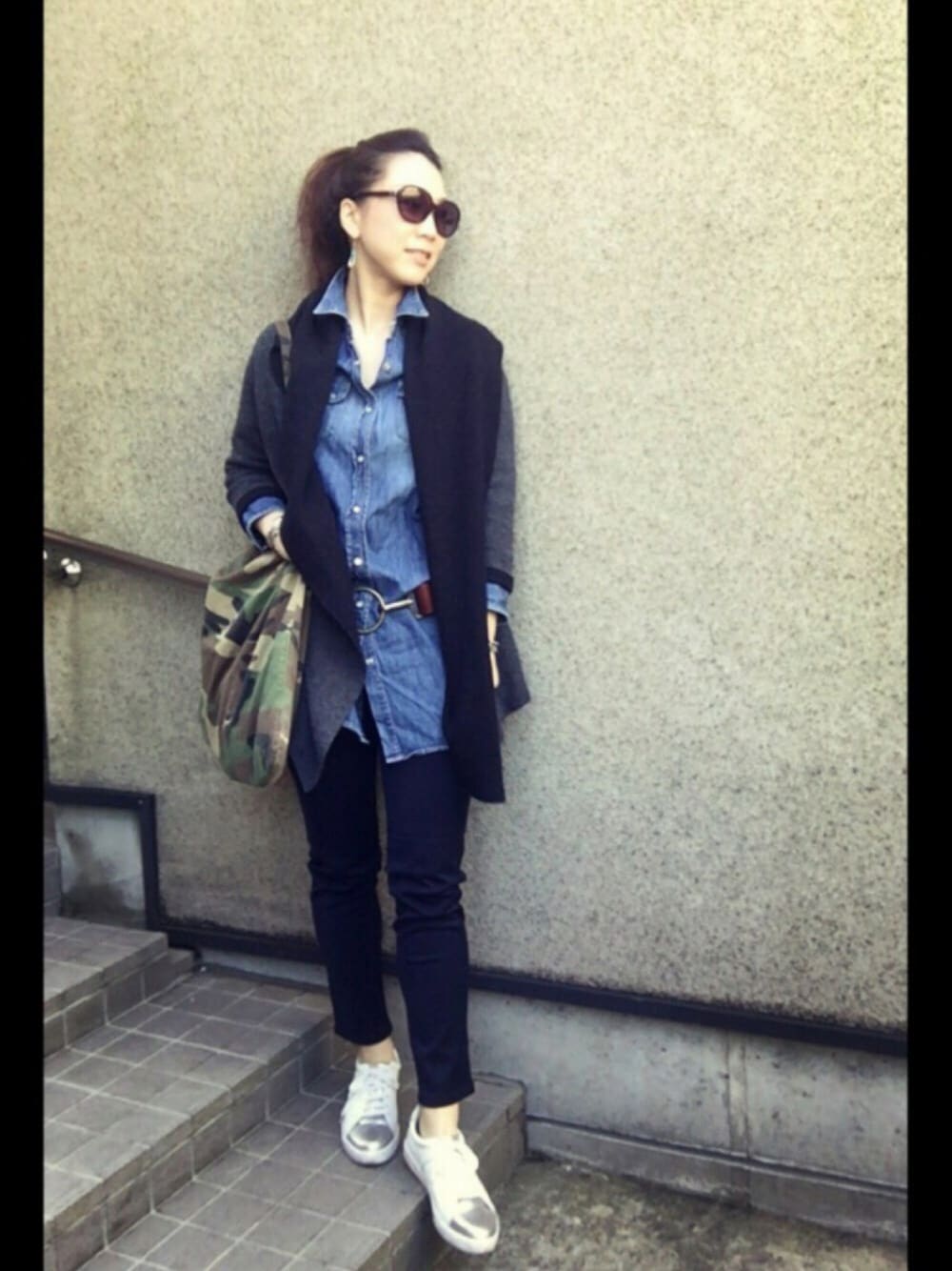 ☆ dungaree × Navy ☆ 花見仕様🌸 地べたに座っても お尻が冷えないように チュニック丈のダンガリーシャツで😎 少しでも長く 咲いててくれますように😊🌸 … …… 飲み過ぎませんように…