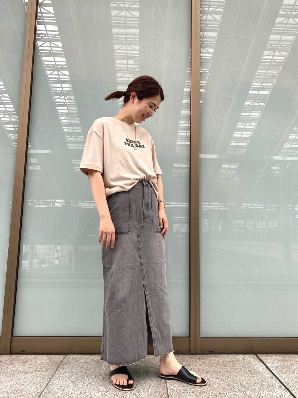 スカートは前にスリットが入っているので動きやすいです◎ グレーで大人っぽく、、、