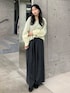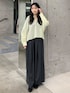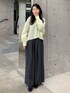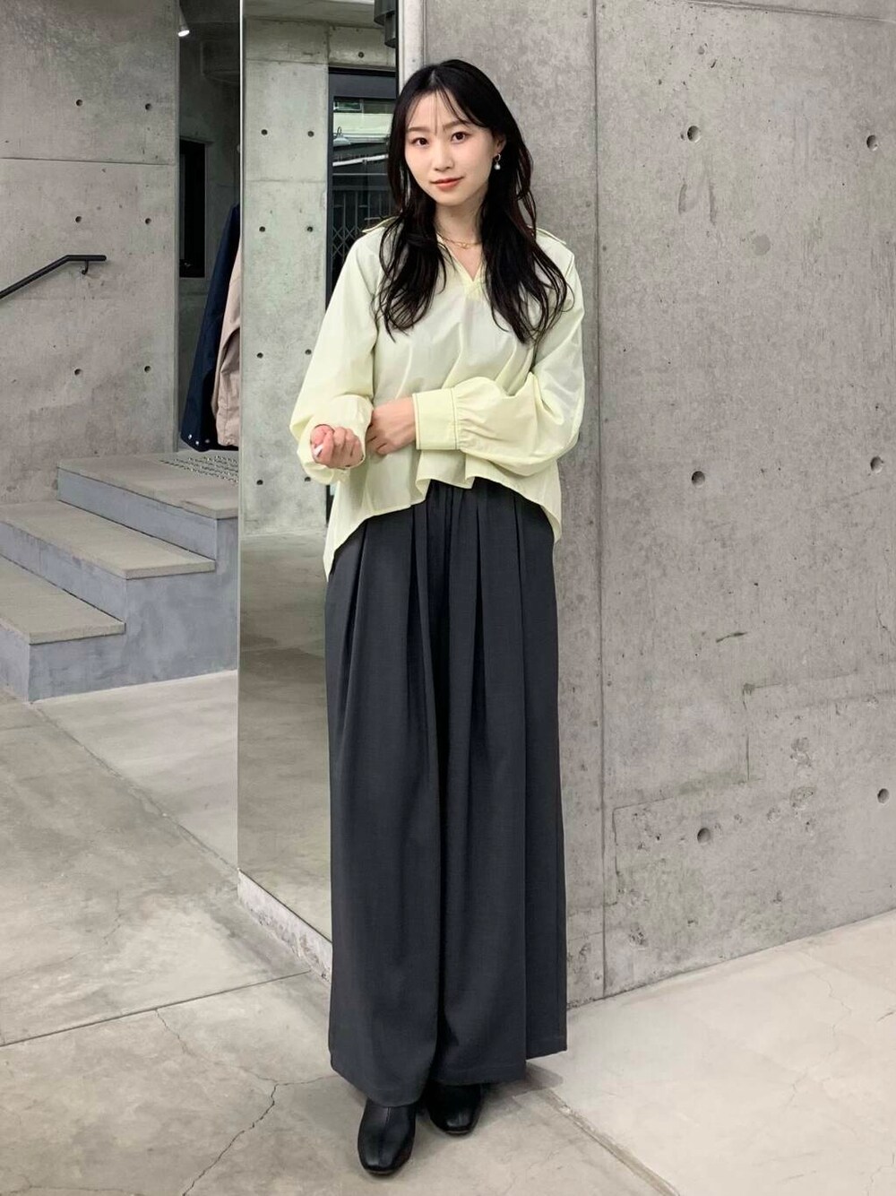 さわやかなレモンの色味に、チャコールのボトムを合わせて甘辛MIXなコーデを組みました! 個人的にとても好きなコーデになりました!私はブルべ夏なので、黄色はあまり似合わないのですが、薄めの黄色だったこともあり、気になることなく着用できました! シャツの形も前が短く後ろが長いデザインで、横から見るときれいなシルエットですよね☆