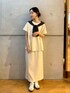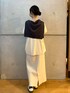 店頭でとても人気のあるウエストに切り替えしがあるトップスと、コットンのストレートスカートで合わせました! ホワイトコーデではありながら、肩にかけているカーディガンを暗めの色味にすることで全体としてぼやけず、まとまっています✨ トップスはとてもサラサラした生地感で、接触冷感などはついていないですが、個人的にはひんやりとして気持ちよかったです^ ^