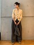 ボリューム感のあるワイドパンツと上はすっきりとしたカーディガンで合わせました! かなりワイドなパンツですが、ハイウエストであり、体のラインを拾わないデザインなのでとても綺麗に着こなせます✨