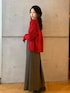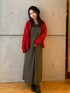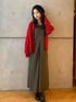 ブラウンの色味に赤はとっても合いますよね! まだ寒くなりきってないときに秋のワンピースは着ておきましょう!^^この写真では合わせてませんが、タートルネックをレイヤーし、カーディガンを羽織るのもいいですよ!