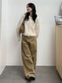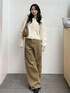 大好きな色の組み合わせです^^ ボトムはかなりダボっと履くのが最近私の中ではブームなので普段36ですが、今回は40を着ています!もちろんウエストはベルトできつく留めております!! カーブしているデザインが普通のコーデュロイパンツとは違って、おススメです^^ トップスのシャギーニットもボリューム感あってとってもかわいいです。。。