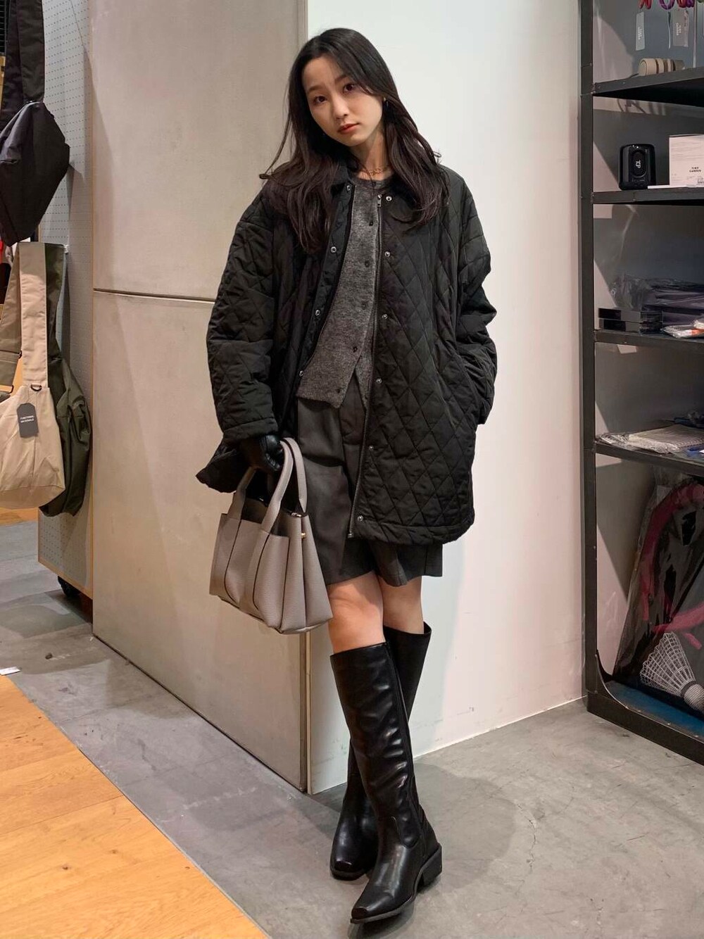 ダークカラーでまとめて組んでみました! キルティングはカジュアルっぽくなりやすいですが、ダークトーンでまとめるとシックな感じに仕上がります^^