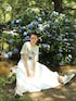 夏の青空や緑に似合う ホワイトコーデをチョイス! Tシャツとスニーカーでカジュアルな雰囲気を 保ちつつ、存在感のあるホワイトの ギャザースカートでガーリーさをプラス🤲🏻