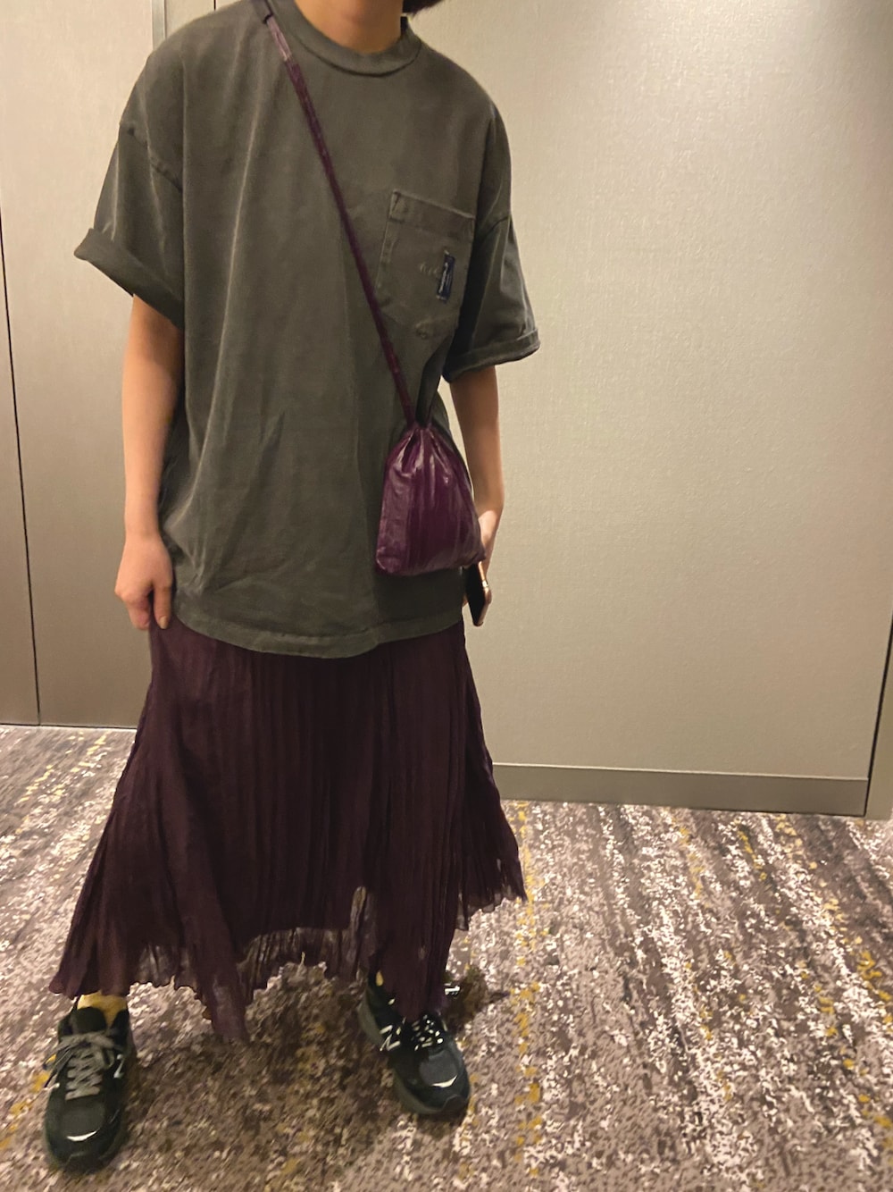 光のハンドバッグ「レザーミニポシェット」を使ったコーディネート