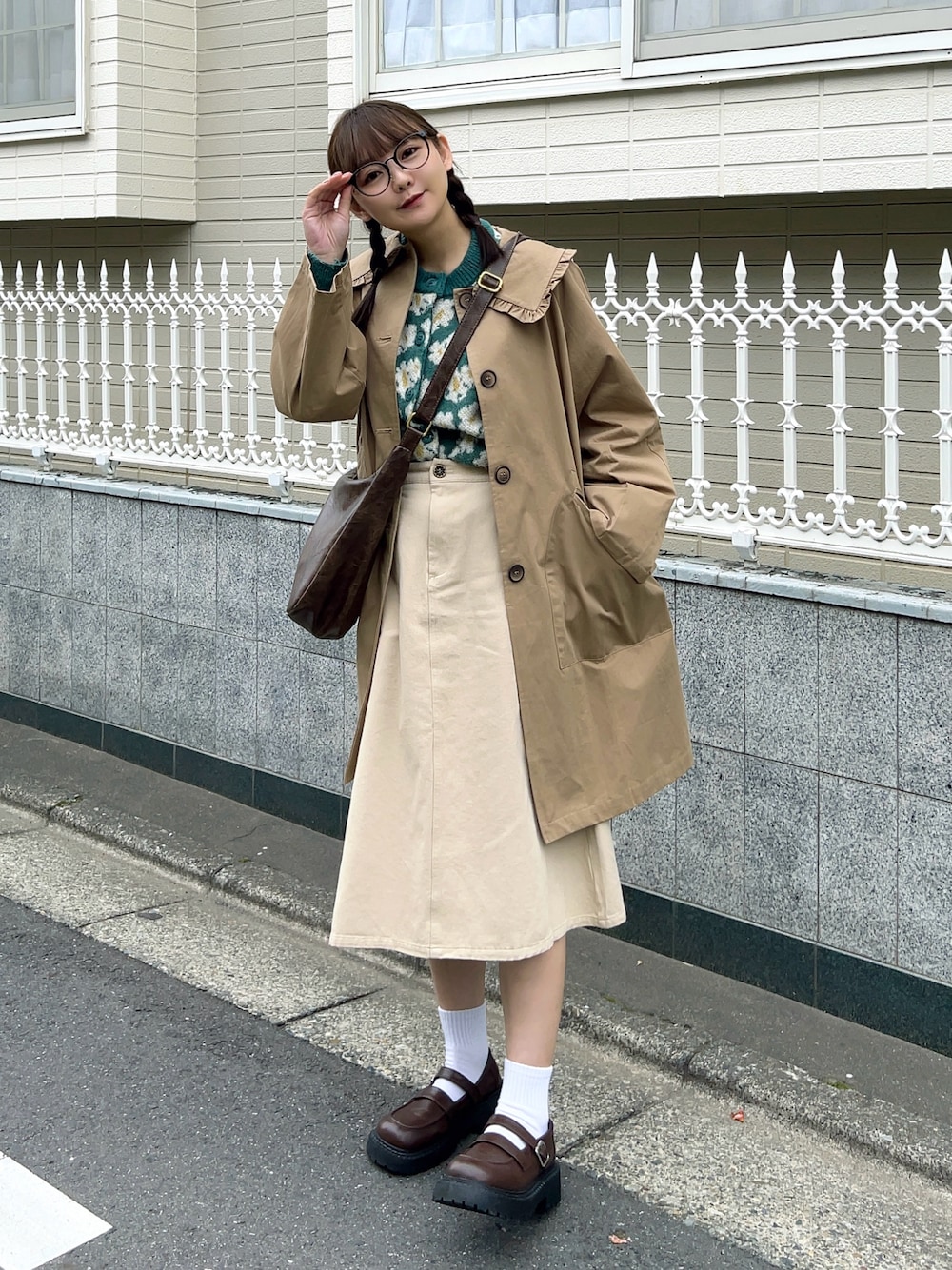 おすすめ春アウター🌼 大きい襟とくすみカラーがかわいすぎる♡ ベージュブラウンのワントーンにグリーンを入れて春っぽく☘️ Instagram🆕 @misane1209_