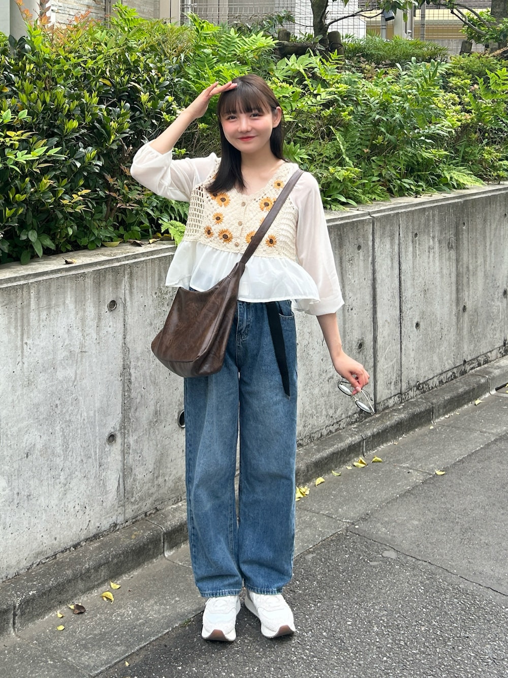 みさねのデニムパンツ「ヴィンテージライクデニムワイドパンツ」を使ったコーディネート
