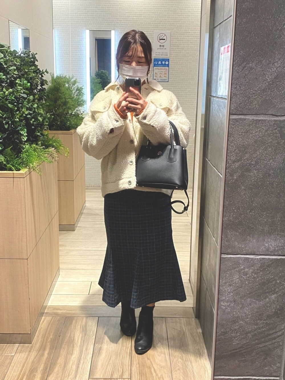今日は近場でお出かけ♩ 緊急事態宣言出てもやっぱり 外食はしたい、、、😔 オシャレさんが最近よく着てる マーメイドスカート👚が着たくて タンスから引っ張りだした! ショート丈のコートと合わせたら スタイルアップしてお気に入り決定♡♡ チェック柄だけど他の素材を冬にして 防寒対策もばっちり👌🏻(笑)