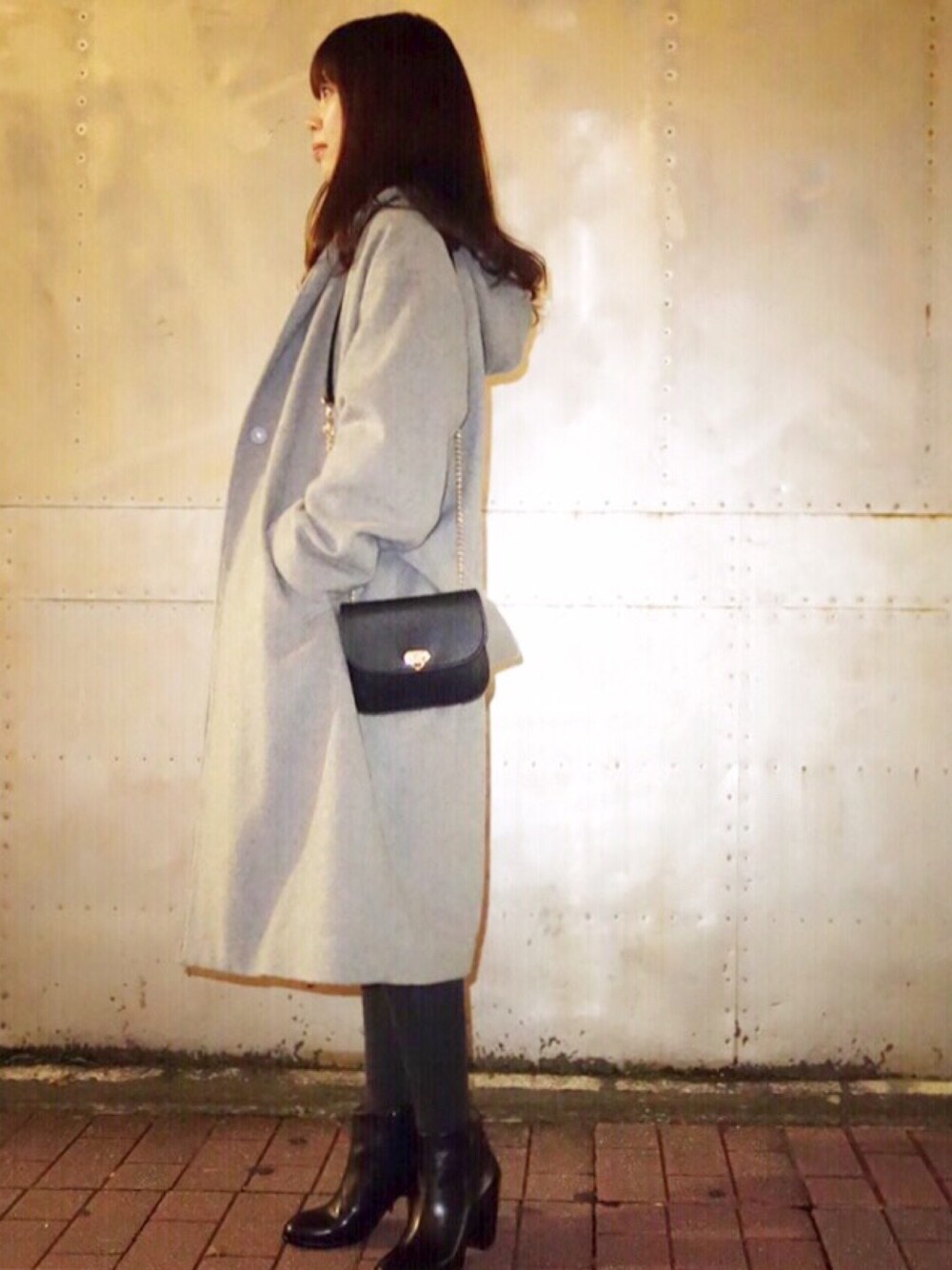 フードチェスターコートとミニチェーンバッグの組み合わせはクリスマスパーティーや忘年会にもぴったり!!