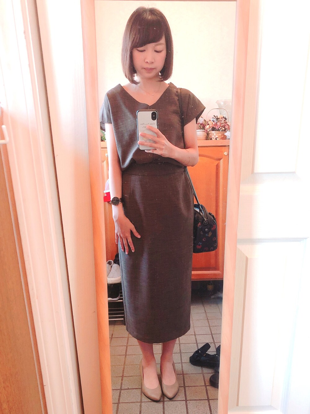 Misakiのワンピース「【WEB限定】ブラウスxストレートスカート セットアップ」を使ったコーディネート