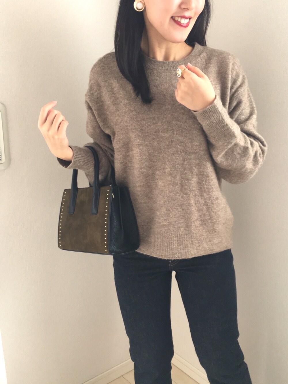 ご覧いただきありがとうございます😊 近所の子どもに会いに行く時は、ふわふろしたトップス着てると抱きしめた時に子どもが笑顔になってくれます😍👍✨H&MのトップスとZOZOデニム👖💓 左手のリング、700円なのにゴージャスに見えてお気に入りです💍✨✨ トップス➡️H&M 2990円 パンツ➡️ZOZOデニム 4990円 バッグ➡️GU 2500円ぐらい イヤリング➡️Heartdance 2900円 元は結婚式のために購入したもの リング➡️heartdance 700円