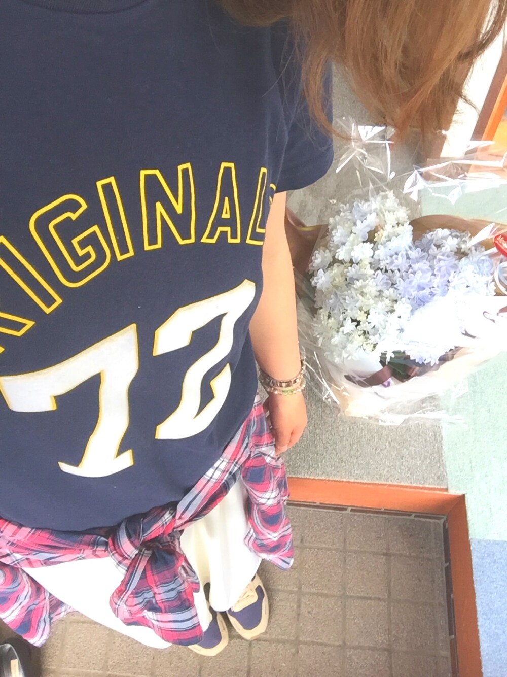 母の日なのでお花を持って実家へ...♡ 喜んでくれて良かった〜 今日もカジュアルで♪♪