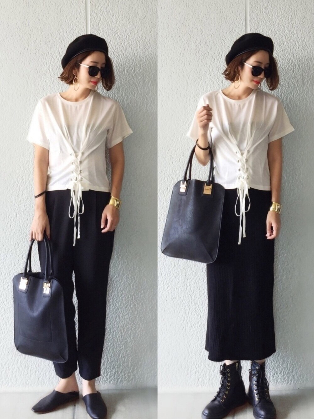 コルセットTシャツでモノトーンコーデ! モノトーンコーデにピッタリ合うこの素敵なバッグは Histoire様よりご提供頂きました✨✨ 縦長ペタンコのこの形、凄く可愛いですよね👜✨✨ ブラックはゴールドのバックルもすごく引き立つ✨✨ シンプルだから、カジュアルにもキレイめにも使えますね🙆 スカーフやチャームを付けるものオススメです🤗✨✨