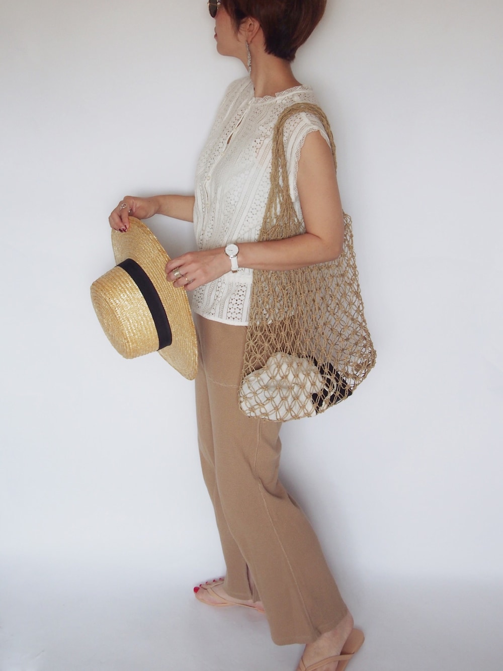 綺麗目なレースブラウスに 楽ちんなサーマルパンツ #PR
