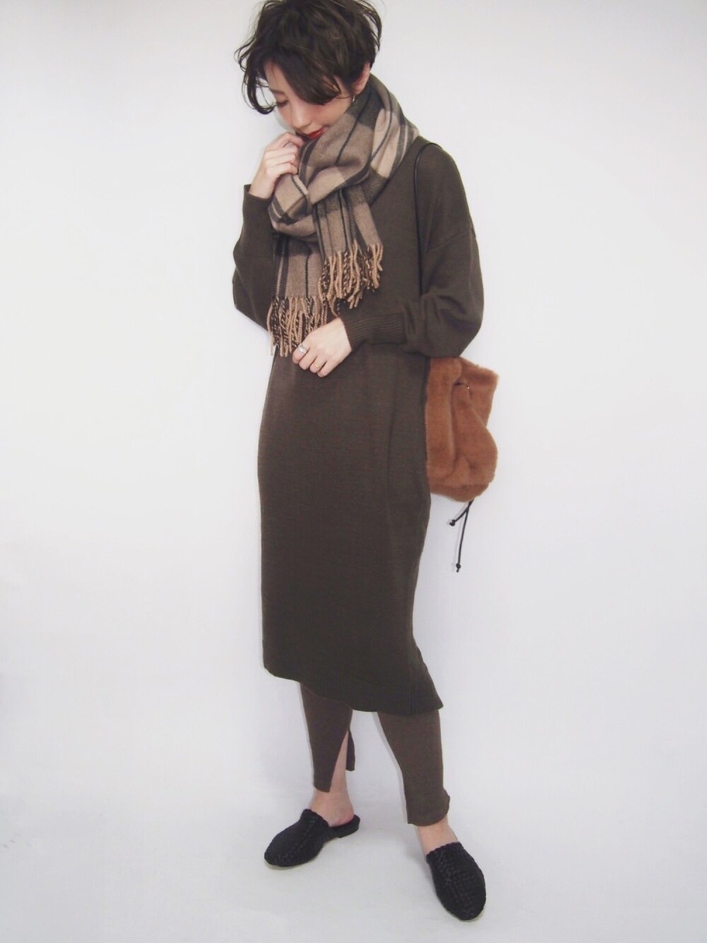 AZUL ENCANTOさんのニットワンピ カーキを着用させて頂きました🍂 ブラウン系の小物で秋っぽいコーデに