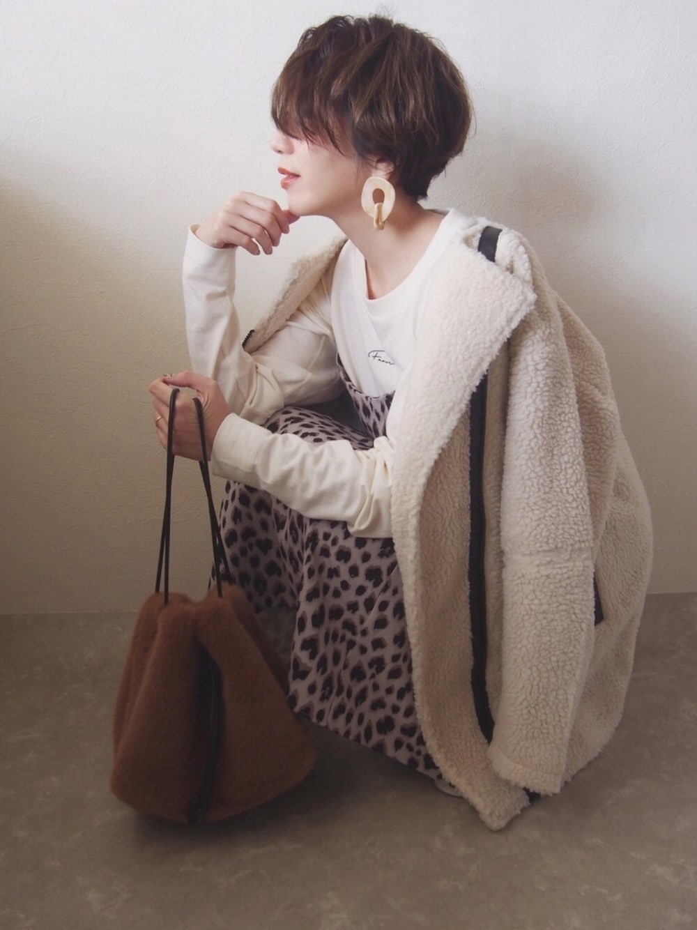 普段よく着てるniko and…のレオパードワンピ🐆💫 柄がケバくないのでお気に入りです! ロゴロンTでカジュアルに♪ 寒くなってきたので LIPSTARさんのボアジャケットが 活躍中👍✨ #PR