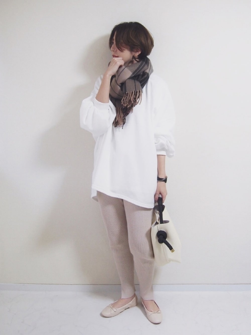 楽ちんスウェット&レギンスコーデ♪ 大好きな ホワイト×ベージュのワントーンで まとめました バッグもZUCCaさんのホワイトバッグ👜 #PR