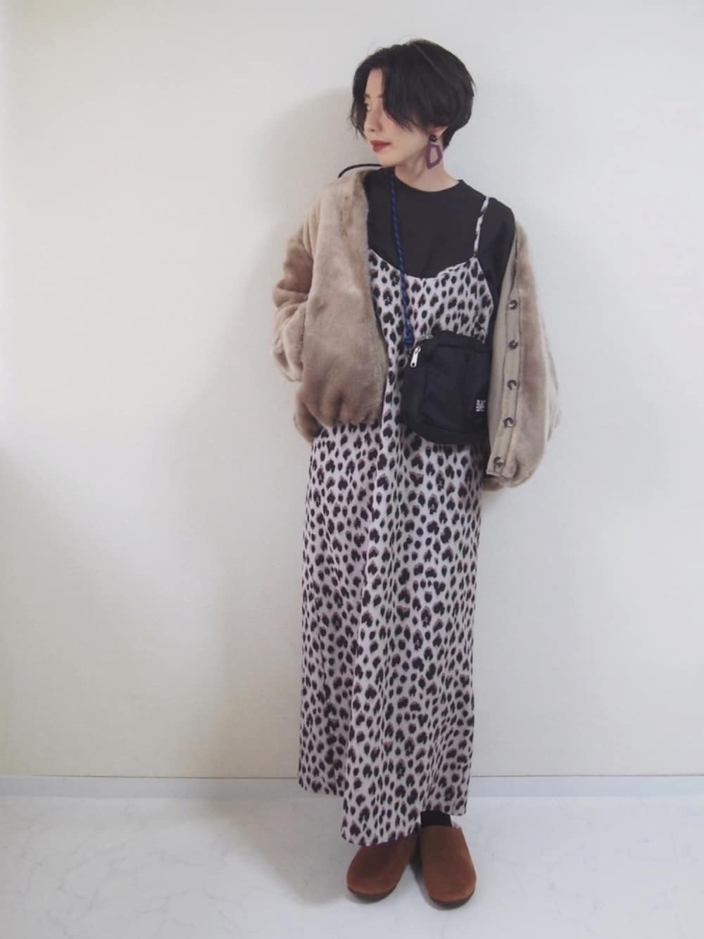 お気に入りのレオパードのワンピに センスオブプレイスさんの ファージャケット🐻 足元もあったかです☺️💓 #PR