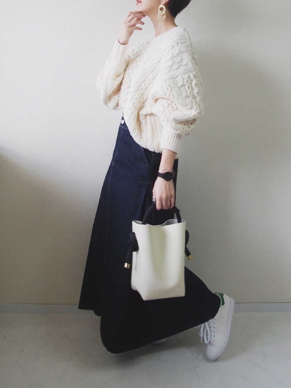 Munichさんのスカート着まわし ニットとデニムの最強コンビ🧶 #PR