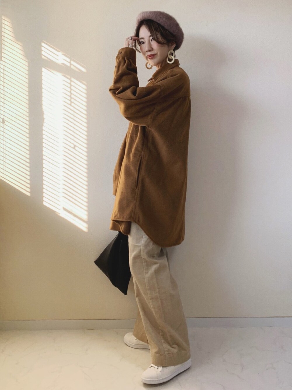 MISATO のハンチング/ベレー帽「アンゴラファーベレー レディース 帽子」を使ったコーディネート