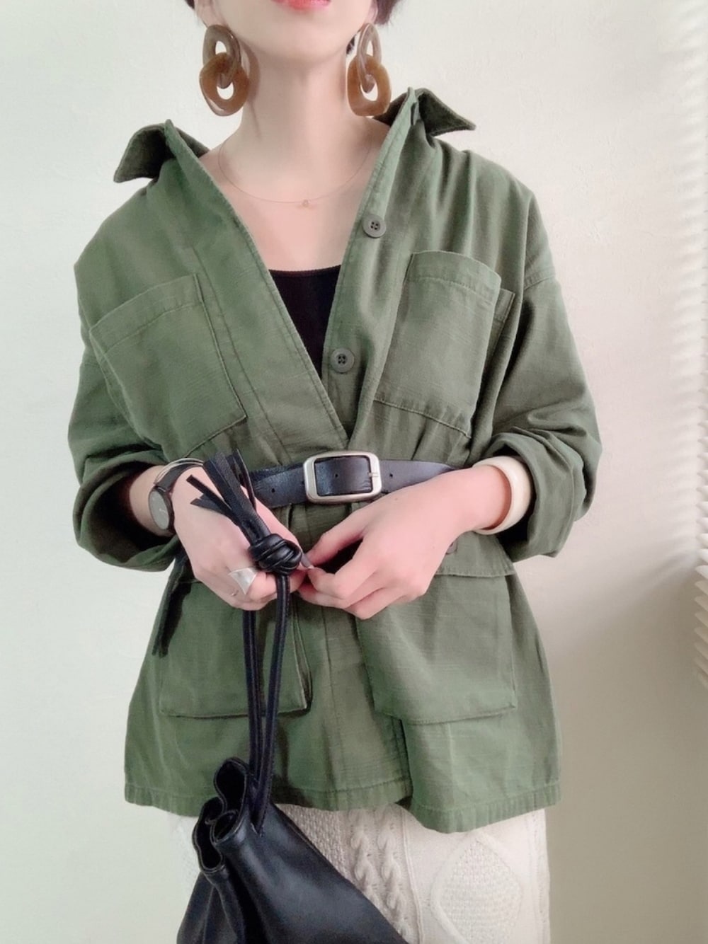 オーバーサイズのミリタリージャケット 寒いけど春服が気になります🌱 ワイヤーネックレスはSKAGENさんの物 #PR