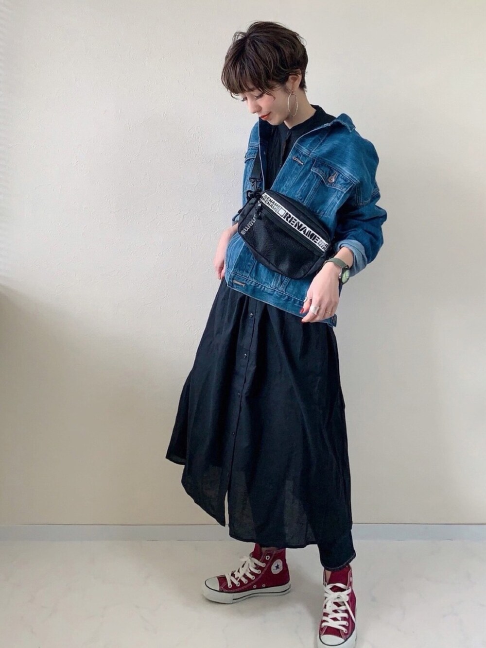 定番だけど お気に入りなGジャンにワンピース、 スニーカー合わせ👟 春になったら一枚で着たいsonnylabelさんのワンピース👗 羽織にも良さそう◎ ワンピスタイルにはメンズライクな 大きめのfloristさんの 時計合わせました カーキがカッコイイ! #PR