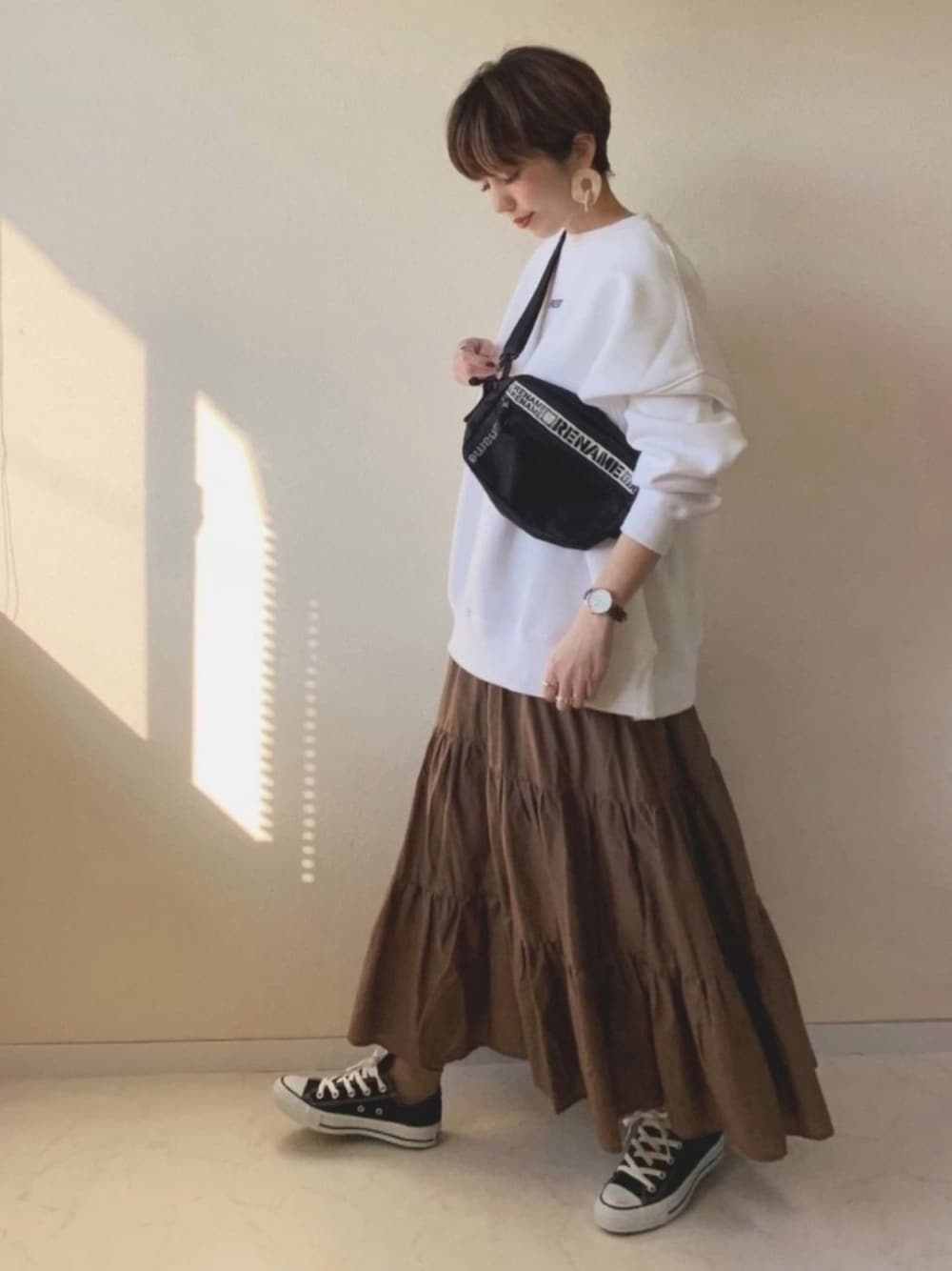 オーバーサイズでゆったり☺️ BROTHERHOODさんのロゴスウェット 前も後ろもロゴが入っていて めちゃくちゃかわいいです🥰 ボリュームあるティアードスカートとも 相性◎ BROTHERHOODさんのお洋服は perkyroomさんでお取り扱いしているので 是非チェックしてみてね🤗💫