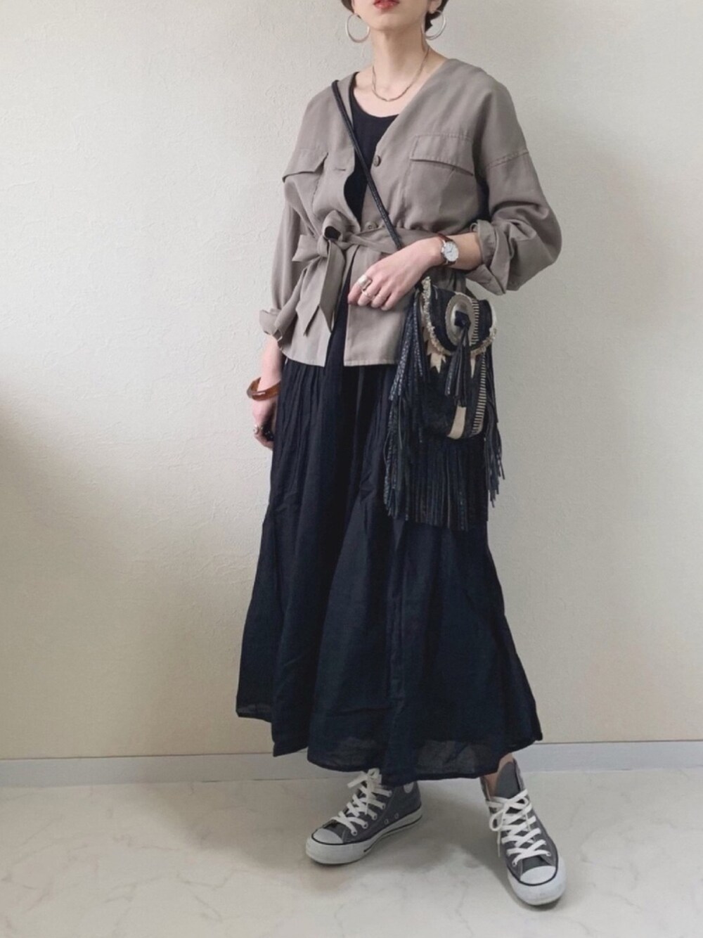 ボリュームのあるKBFのギャザーワンピに 春アウター🌿 トップスやアウターがとっても合わせやすいオススメワンピ❤︎ #PR