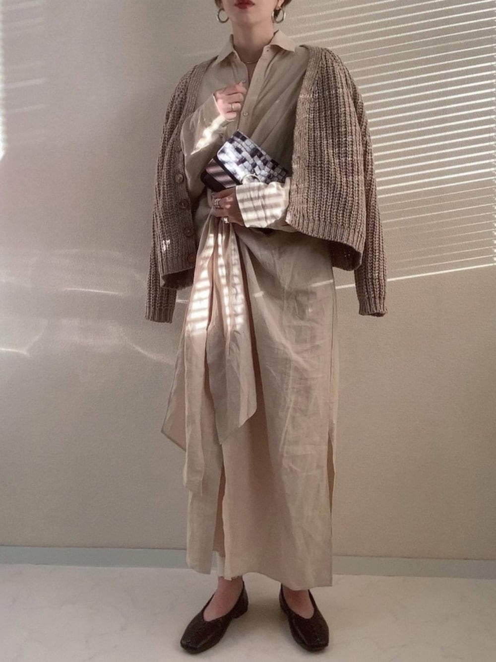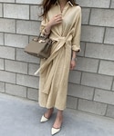 MISATO のシャツワンピース「[naning9] リネン混ウエストストラップシャツワンピース」を使ったコーディネート
