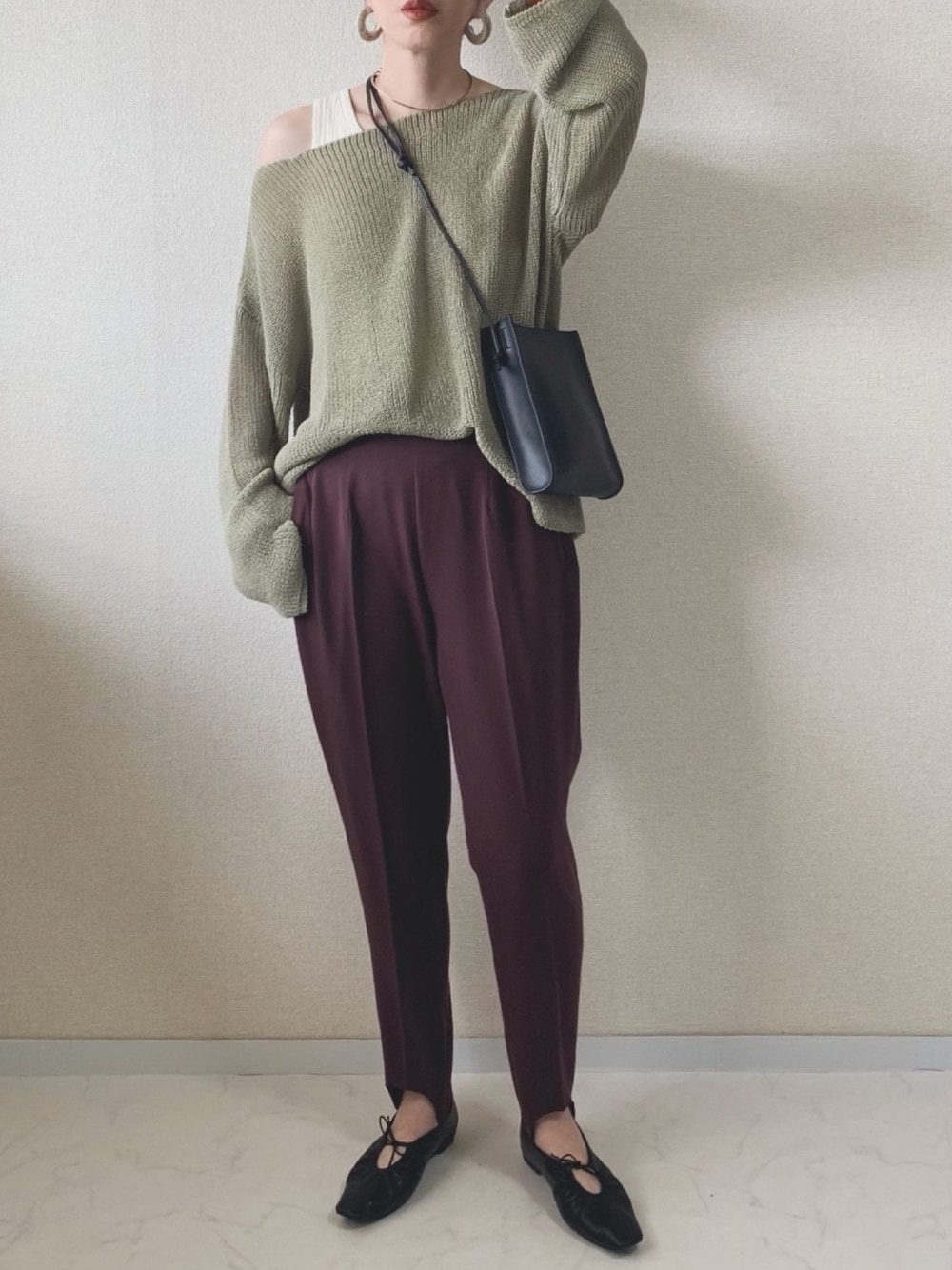 お気に入りのシアーニット ボルドー入れて秋っぽくしました🍂