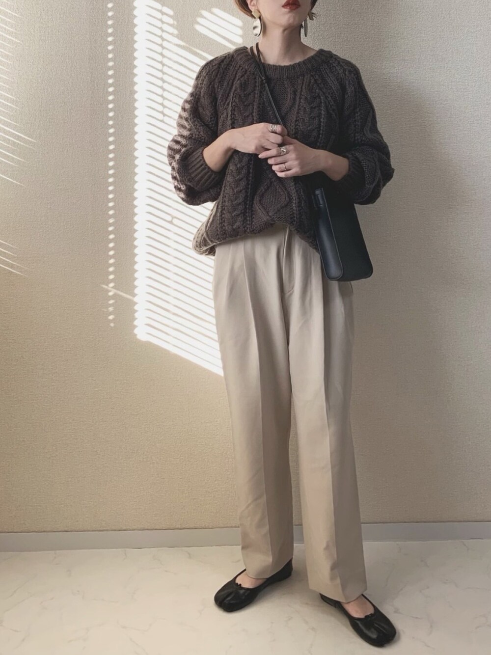 MISATO のニット/セーター「ハンドライク立体ケーブルカラーニット」を使ったコーディネート