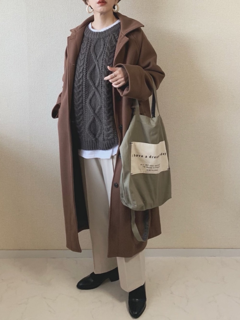 MISATO のニット/セーター「ハンドライク立体ケーブルカラーニット」を使ったコーディネート